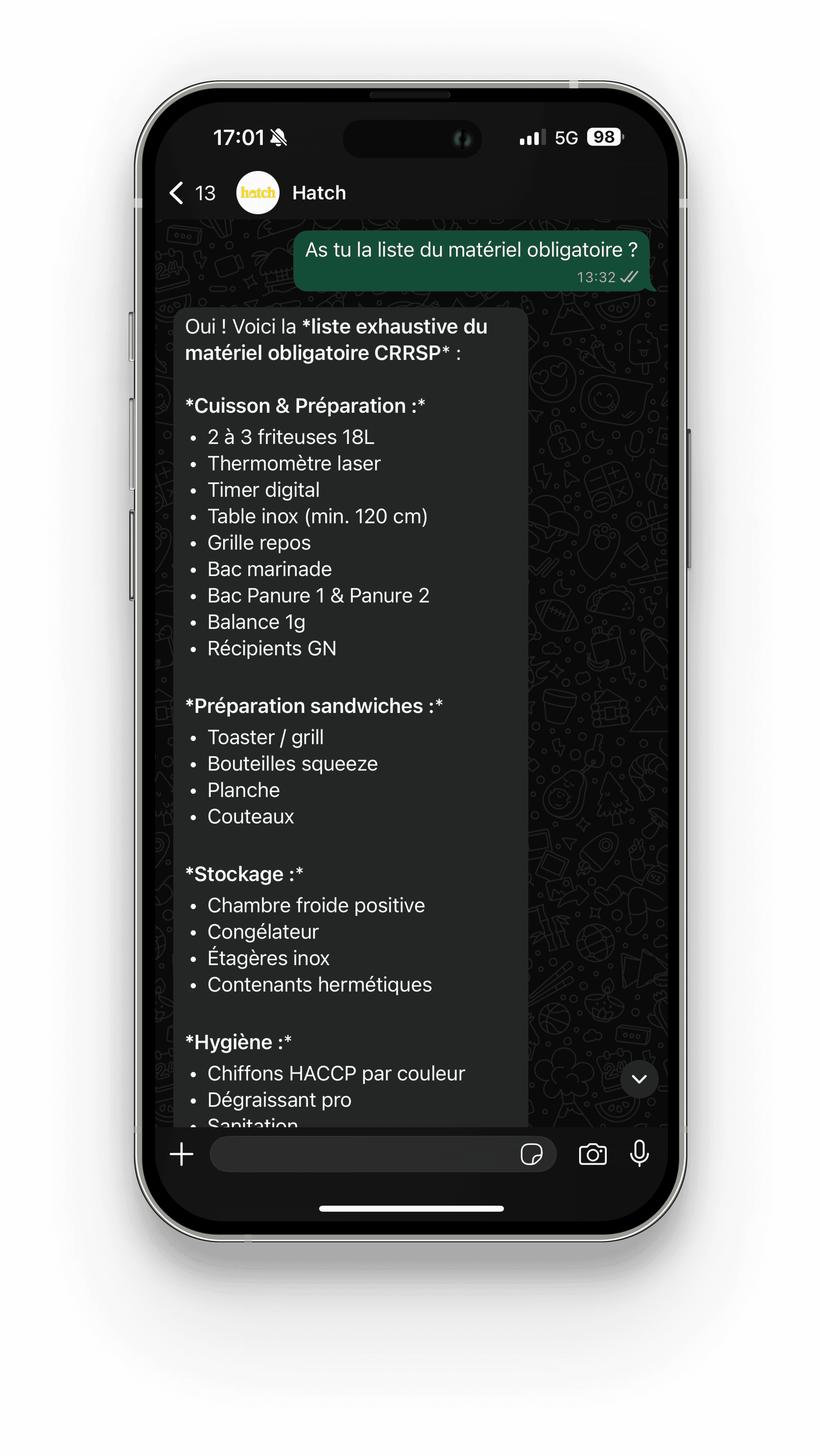 Hatch synchronise vos documents internes et les transforme en actions simples pour le terrain : réponses instantanées, micro-formations, et mises à jour opérationnelles. Libérez vous du temps pour vous concentrer sur l’essentiel.