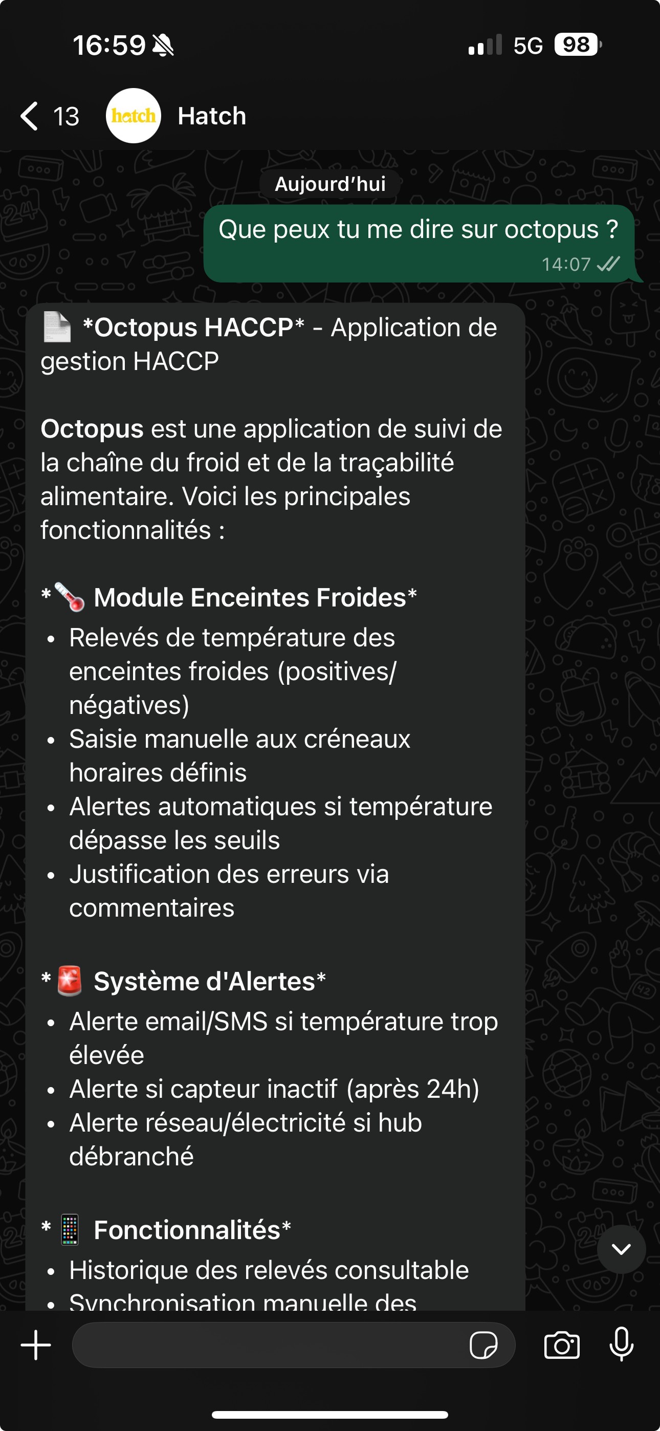 Hatch s’intègre à WhatsApp : il l’organise, l’enrichit et le structure à partir de vos contenus internes.