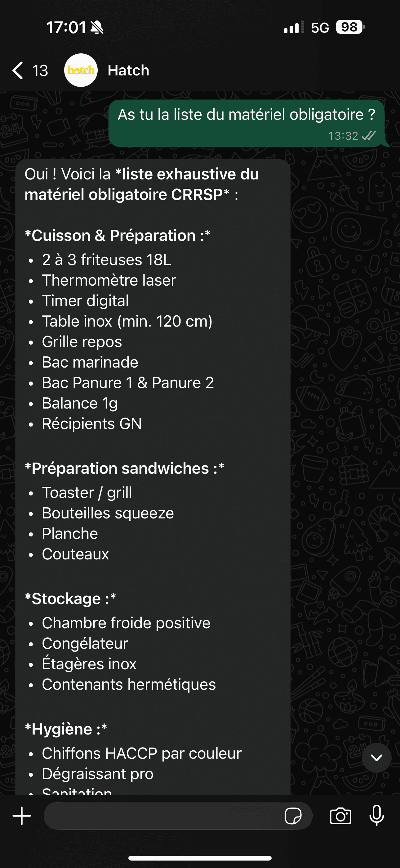 Notre IA est entrainée pour répondre aux questions sur tous les outils utilisés dans la restauration.